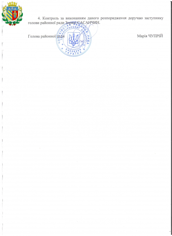 №608 Районна програма забезпечення виконання Чортківською районною державною адміністрацією повноважень, делегованих районною радою на 2020 рік