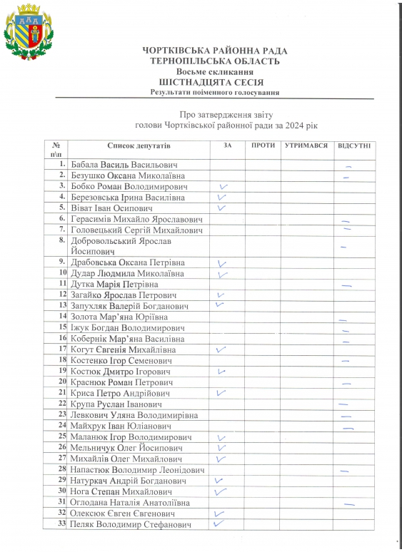 Документи Рішення Рішення VІІІ скликання XVI IV пленарне засідання (30 грудня 2025 року) 304-321 305 Про затвердження звіту голови Чортківської районної ради за 2024 рік