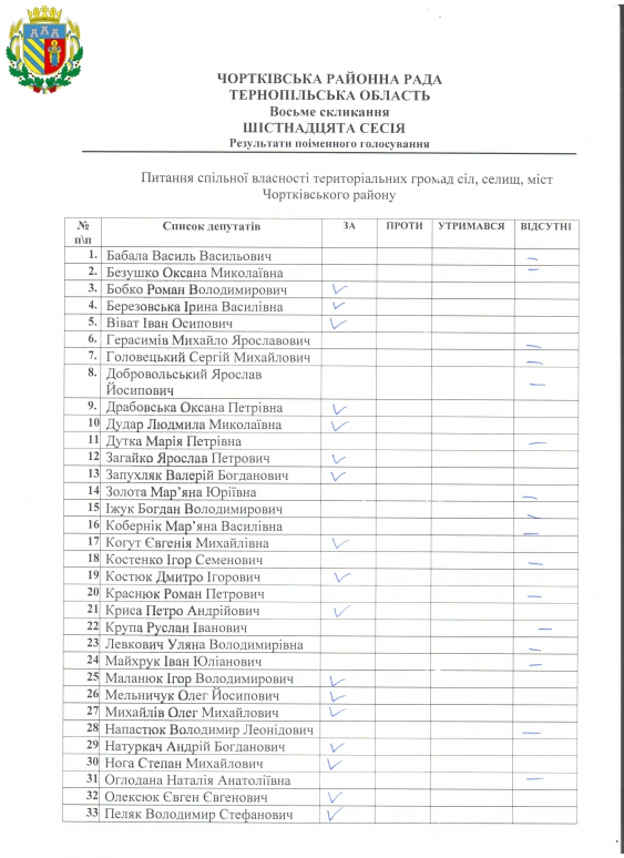 Документи Рішення Рішення VІІІ скликання XVI IV пленарне засідання (30 грудня 2025 року) 304-321 318 Питання спільної власності територіальних громад сіл, селищ, міст Чортківського району