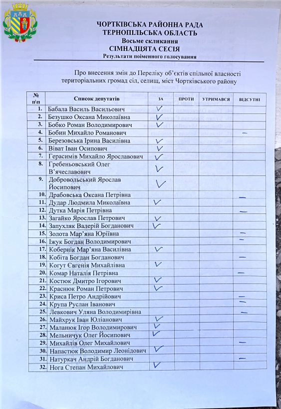 Документи Рішення Рішення VІІІ скликання XVII сесія (26 березня 2026 року) 322-336 332 Про внесення змін до Переліку об’єктів спільної власності територіальних громад сіл, селищ, міст Чортківського району