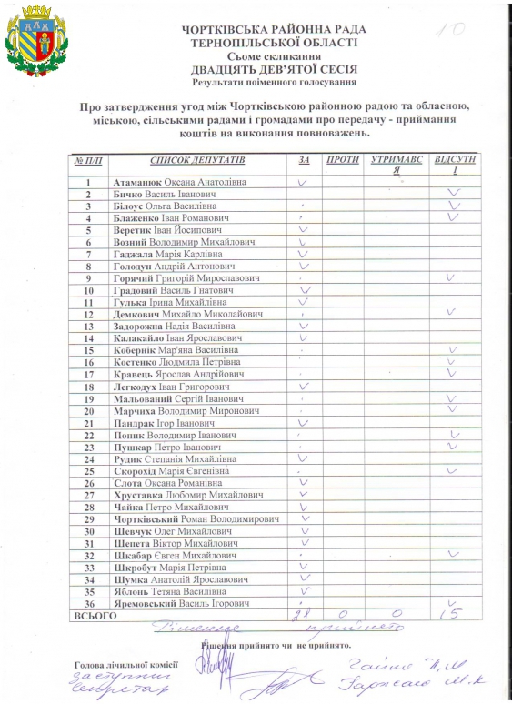 2. Затвердити угоди між Чортківською районною радою та обласною, міською, сільськими радами і громадами про передачу - приймання коштів на виконання повноважень, згідно переліку, що додається.