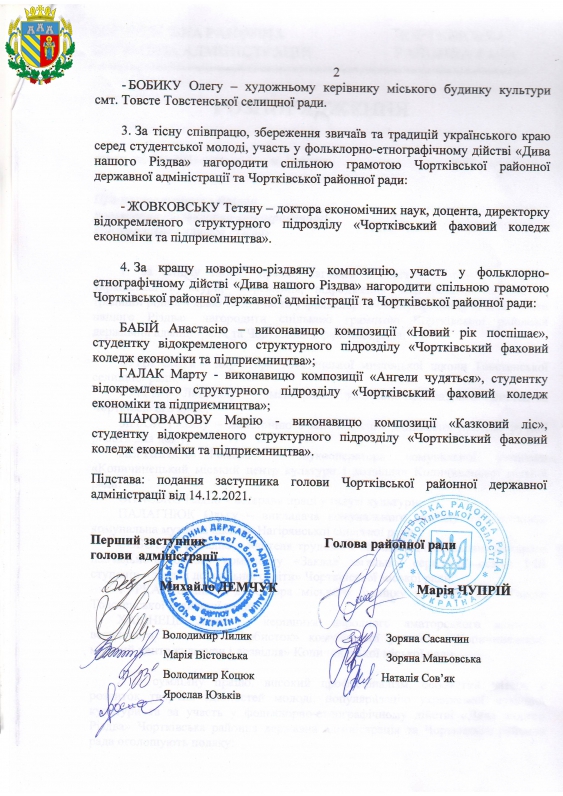 Документи Розпорядження голови районної ради з основної діяльності 2021 №65-од "Про нагородження з нагоди проведення фольклорно-етнографічного дійства "Дива нашого Різдва"