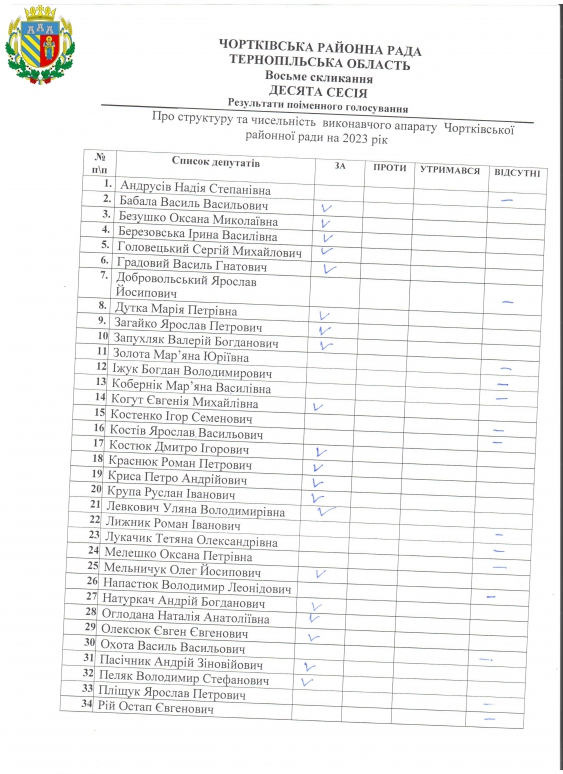 виконавчого апарату Чортківської районної