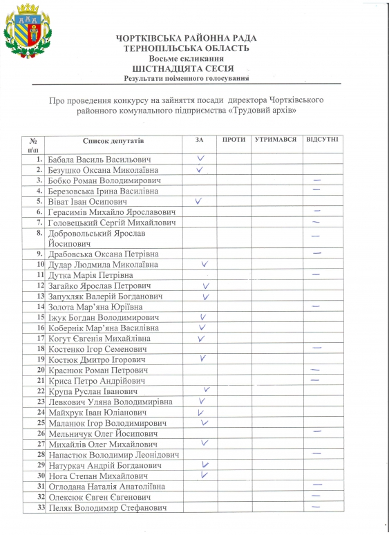 1. Прийняти рішення про проведення конкурсу на зайняття посади директора Чортківського районного комунального підприємства «Трудовий архів».
