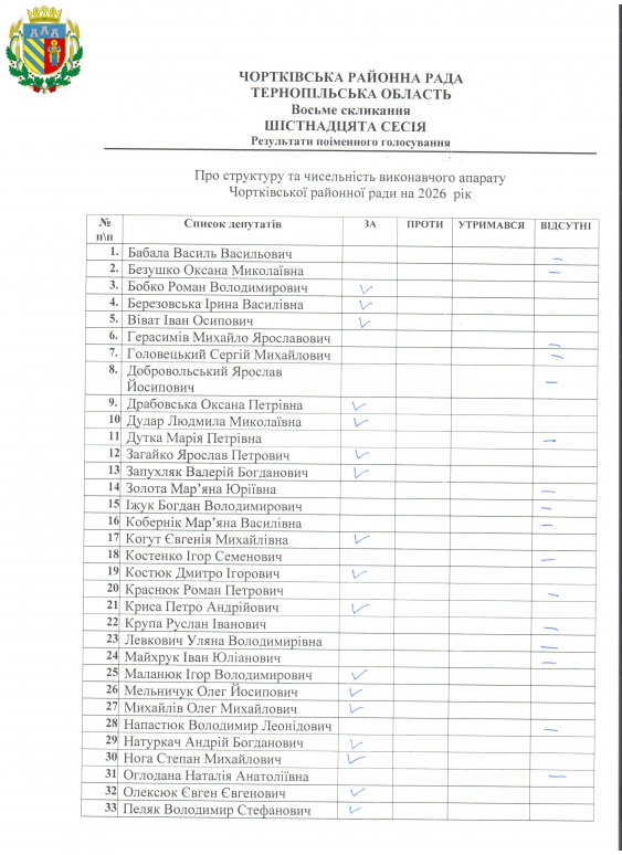 1. Затвердити структуру та чисельність виконавчого апарату Чортківської районної ради на 2026 рік, що вводиться в дію з 01 січня 2026 року, який додається.