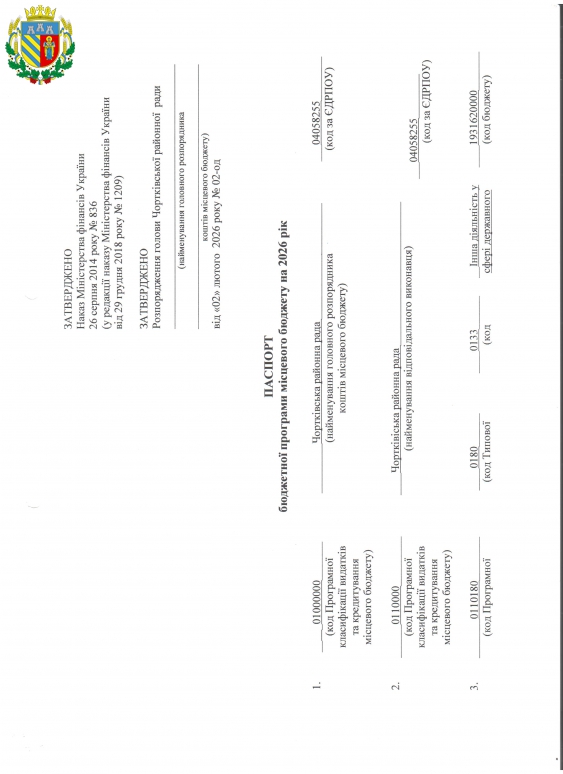 Доступ до публічної інформації → Публічне представлення інформації → ПАСПОРТ 2026 0180