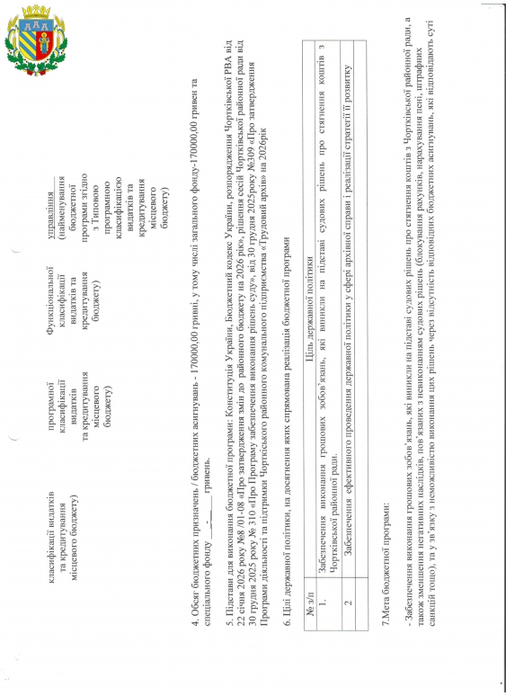 • № 533 ПРОГРАМА сприяння функціонуванню державної реєстрації в Чортківському районі на 2019-2020 роки